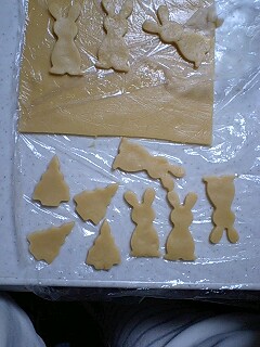 取り出したら袋を見開きで切って型を当てくりぬいていきます。