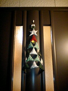玄関ドアは三角のモチーフをいくつか作ってそれをつなぎ合わせてツリーを