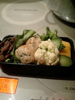 右上の丸っこいのわかります?これこれ私の自信作!鶏胸のミンチに庭に植わっていた・セロリ・