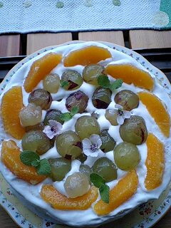 トッピングは巨峰、キャンベル、オレンジと庭に咲いていた